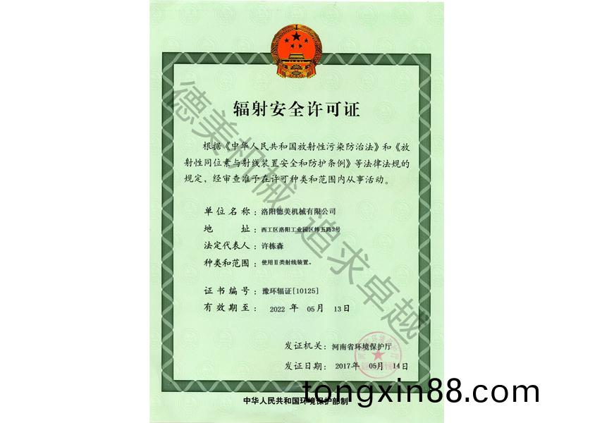 - 2020-08-29 輻(fu)射安全許可(ke)認證(zheng)